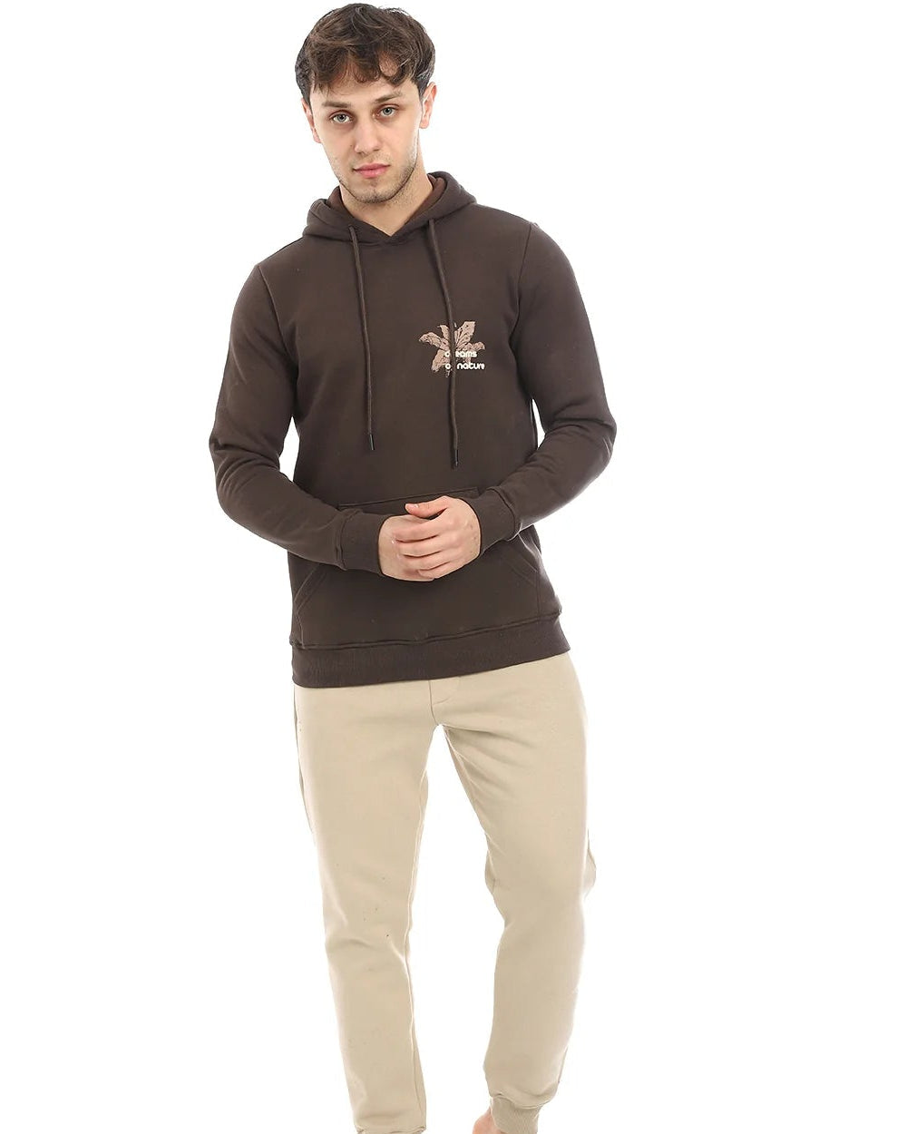 Red CottonMen’s Beige and Black Milton Hoodie – Stylish Fleece-Lined Sweatshirt with “Breathe” Print